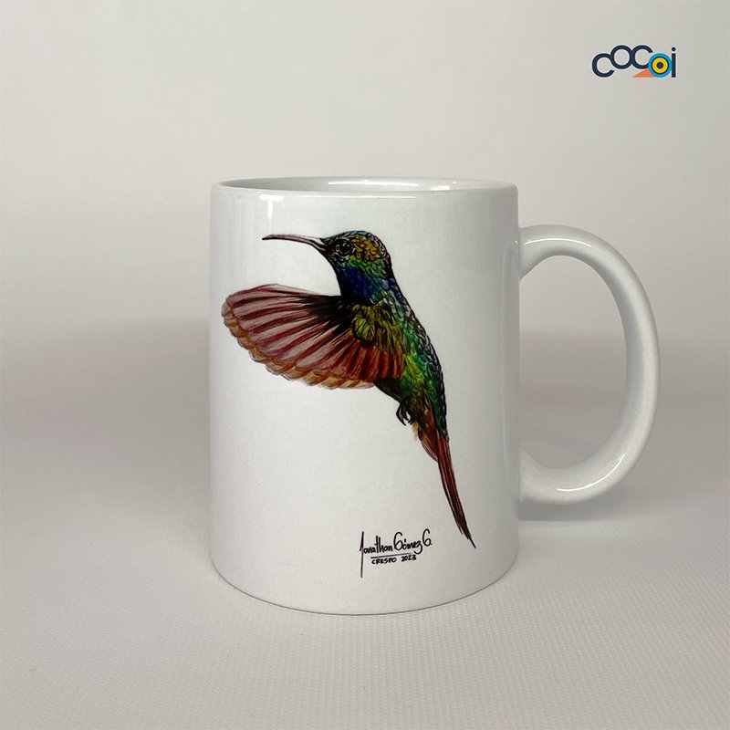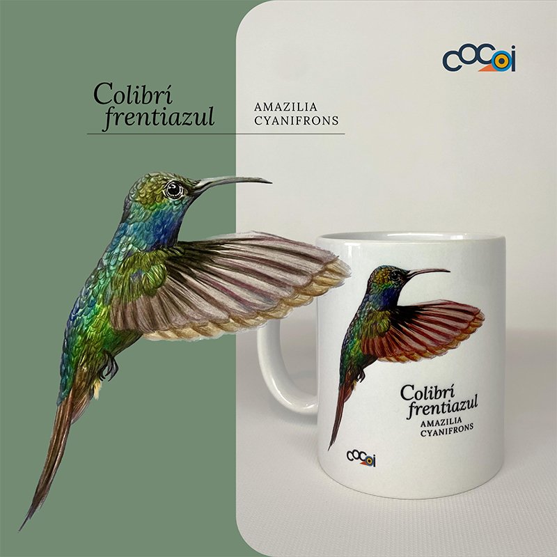 Este colibrí es una especie verdaderamente valiosa, de allí que uno de sus nombres comunes sea “diamante de frente azul”. Es endémico de Colombia y se encuentra en bosques abiertos, matorrales y áreas cultivadas de la zona centro del país. Adquiere tu mug de 11 oz o pocillo de 7 oz con motivo Colibrí frentiazul.
