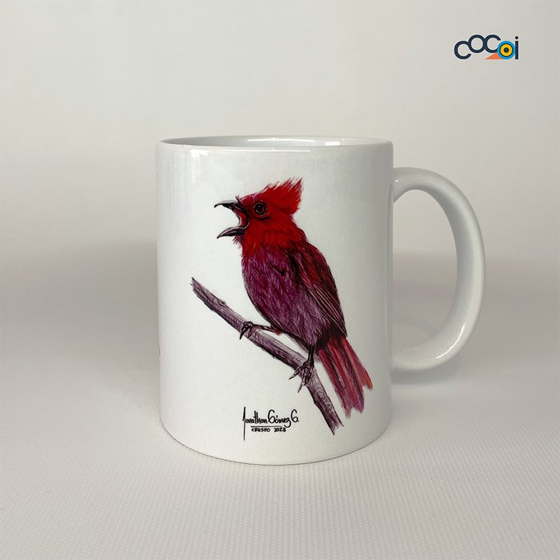 Celebramos nuestra riqueza natural con la ilustración de esta ave endémica de Colombia que puede encontrarse entre la vegetación densa, alrededor de los ríos o en los barrancos de la Cordillera Occidental de los Andes. Si vives en departamentos como Antioquia, Caldas, Quindío o Tolima, te invitamos a afinar la mirada y disfrutar de su inigualable colorido. Adquiere tu mug de 11 oz o pocillo de 7 oz con motivo Piranga copetona.
